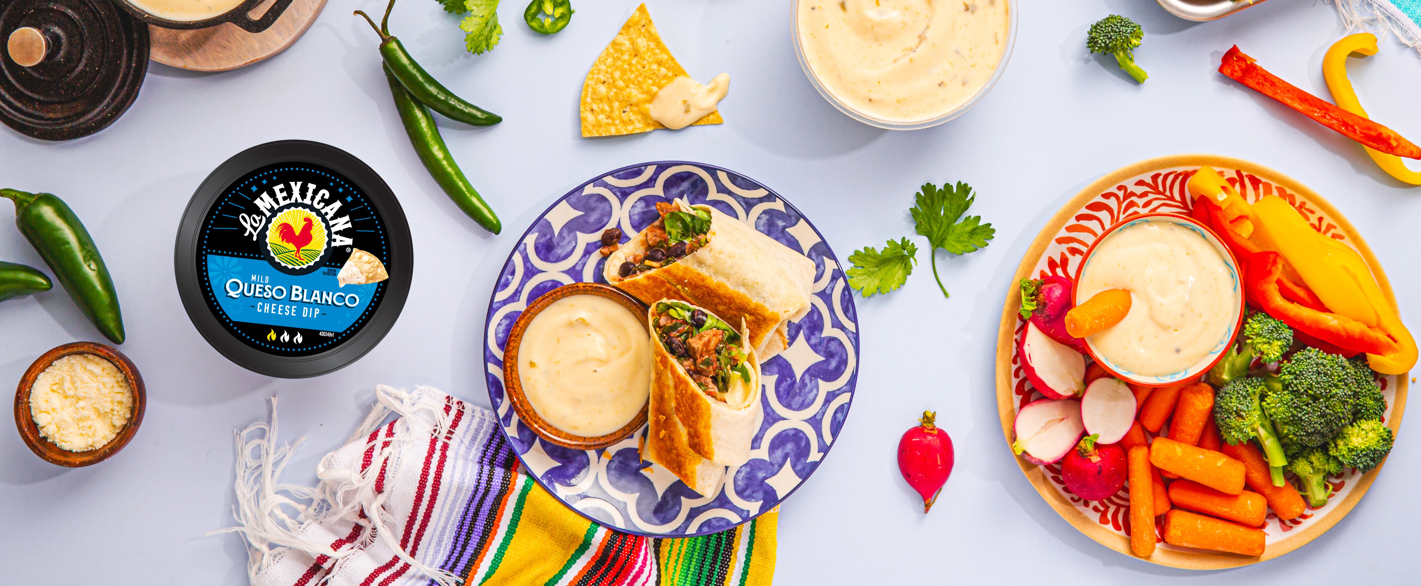 Our smooth, creamy, white cheddar Mild Queso Blanco Dip is a delicious tribute to a true Mexican classic. Carefully crafted using only the finest white cheddar cheese and robust, flavorful roasted green chiles, it’s a cheesy sensation of rich, savory flavor. Whether as a thick, rich dip for your favorite tortilla chips or veggies, or as a tempting topper for burritos, nachos, or tacos, La Mexicana Mild Queso Blanco Dip is always an authentic taste delight. (It’s wonderful served warm – made easy with its microwaveable container!)