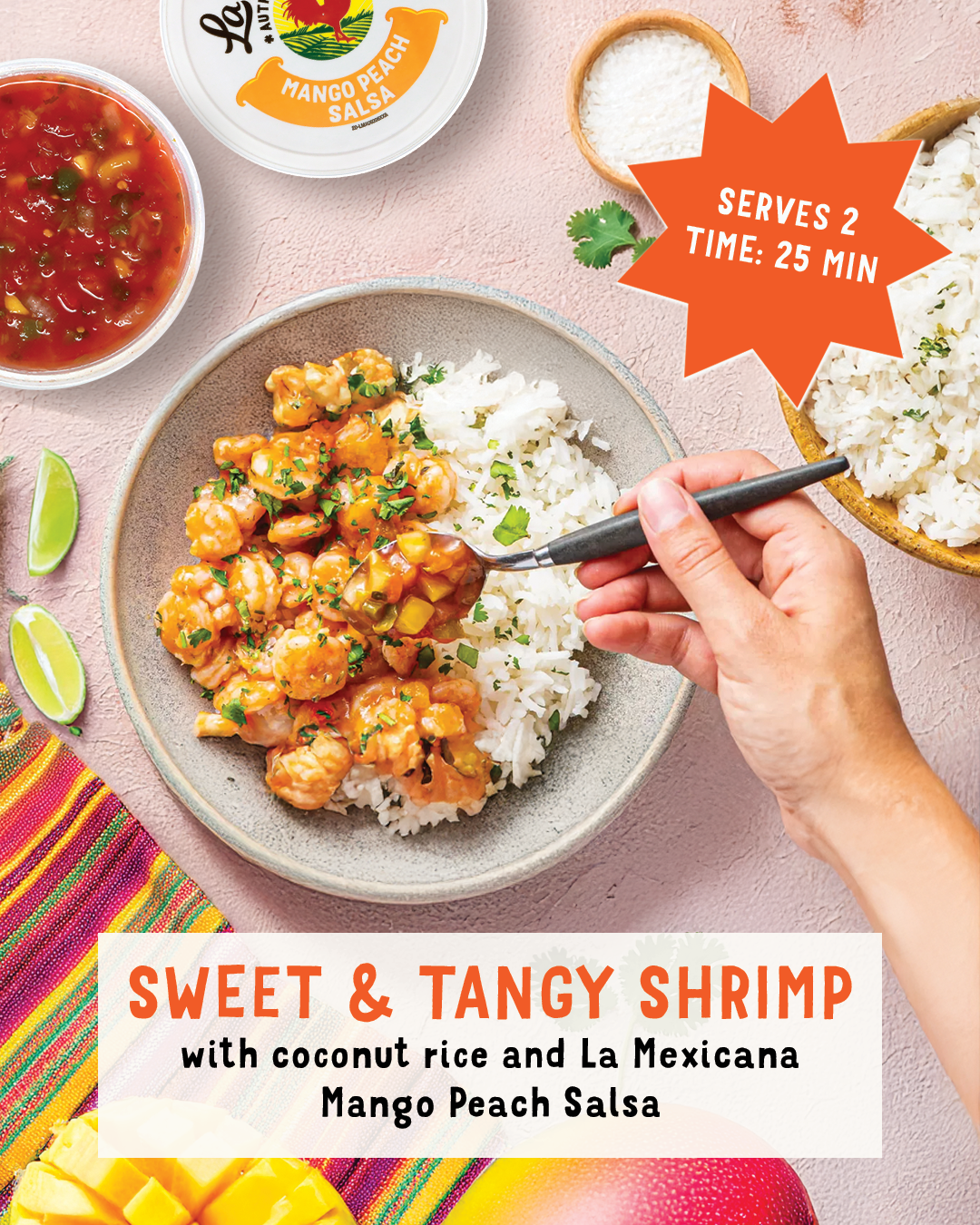 with coconut rice and La Mexicana Mango Peach Salsa
